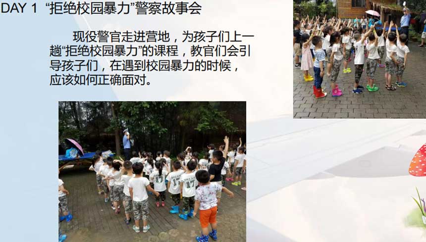 現(xiàn)役警官走進(jìn)營(yíng)地,為孩子們上一趟“拒絕校園暴力”的課程,教官們會(huì)引導(dǎo)孩子們,在遇到校園暴力的時(shí)候,應(yīng)該如何正確面對(duì)。