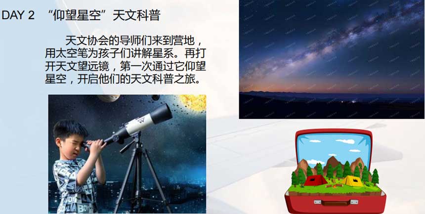 天文協(xié)會(huì)的導(dǎo)師們來(lái)到營(yíng)地,用太空筆為孩子們講解星系。再打開(kāi)天文望遠(yuǎn)鏡,第一次通過(guò)它仰望星空,開(kāi)啟他們的天文科普之旅。