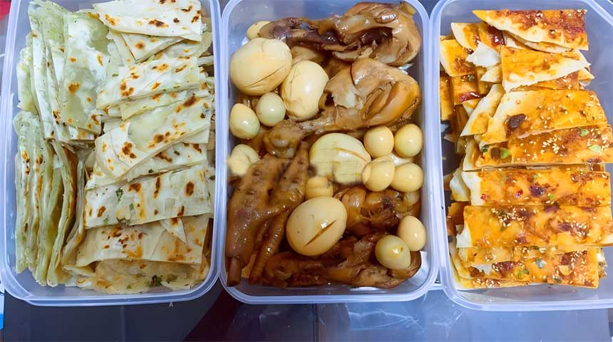 飲料和啤酒都甩到湖里冰起,帶上自己準(zhǔn)備的鹵菜、雞腿、煎餅開啟野餐模式。