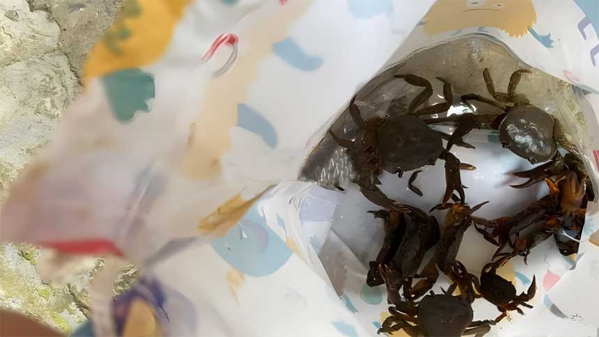 附近有一個(gè)被當(dāng)?shù)厝朔Q為“老龍洞”的地方,途經(jīng)一條河溝,里面螃蟹多慘了。
