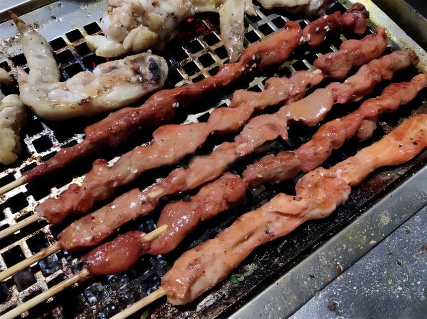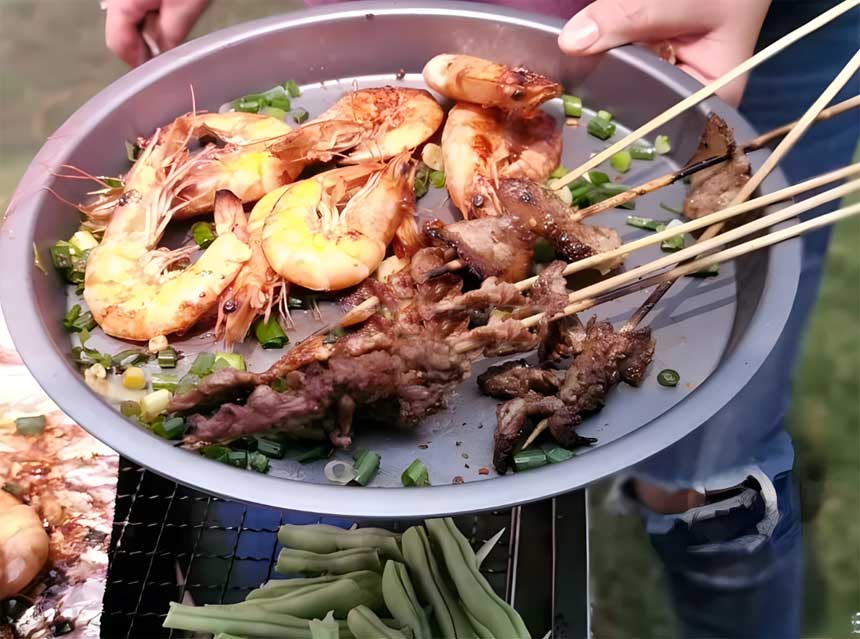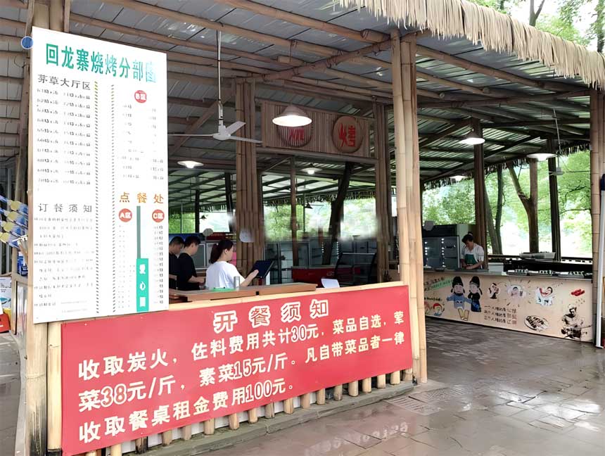 關(guān)于這里燒烤的費(fèi)用:炭火費(fèi)、佐料費(fèi)30元,菜品按照斤數(shù)稱,葷菜38元一斤,素菜15元一斤,也可以自帶菜品,會(huì)收取100元的費(fèi)用。