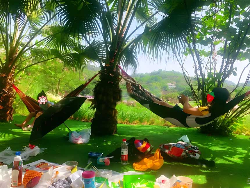 耍累了還可以在樹蔭下乘涼,吊吊床,也太舒服了吧!