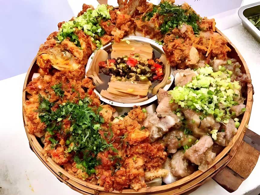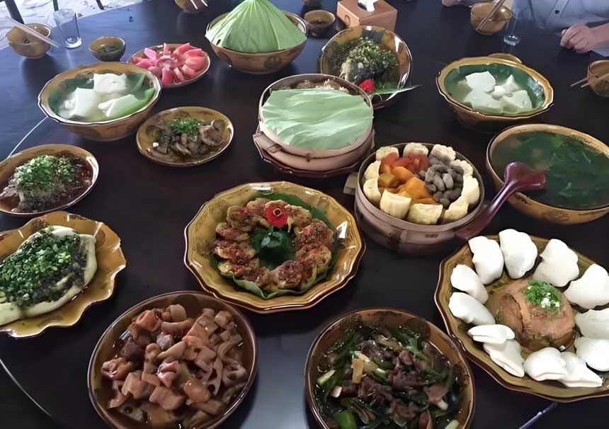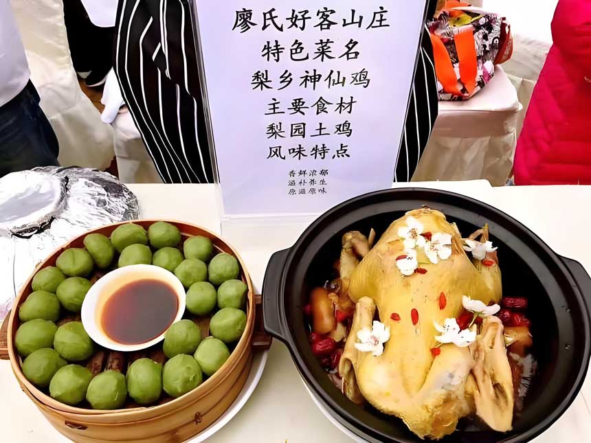 賞花節(jié)期間重點(diǎn)推出黃瓜山山菜、各農(nóng)家樂特色菜品,有芋兒雞、大蒸籠、渾水粑、仔姜鴨、梨花宴、蘿卜干燉臘肉、炸酥肉等等。
