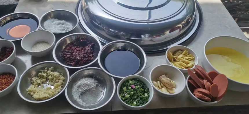 用土灶燉的雞肉:鍋邊圍繞著一圈面團,用火慢慢地燉,還不時咕嚕咕嚕的冒著熱氣。掀開鍋蓋,美味瞬間襲來,沁入心里。喜歡動手的朋友可以自己做喲!PS:酒店準備了多個土灶,還配有全套的廚房用品
