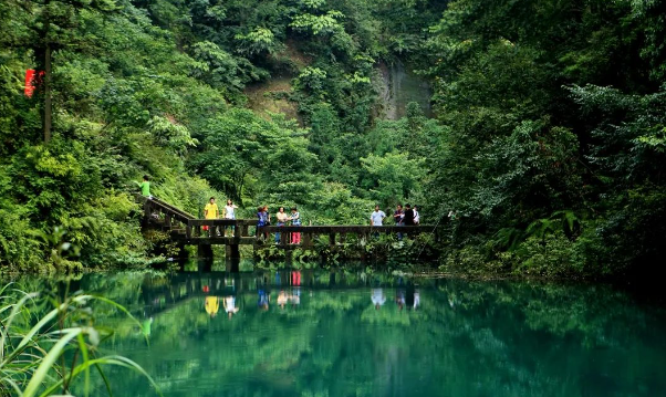 位于公園頂部懸天河上游的湖泊,形似天鵝,故名天鵝湖。色如翠玉,宛如遺落人間的翡翠,靜臥在群山環(huán)抱之中。
