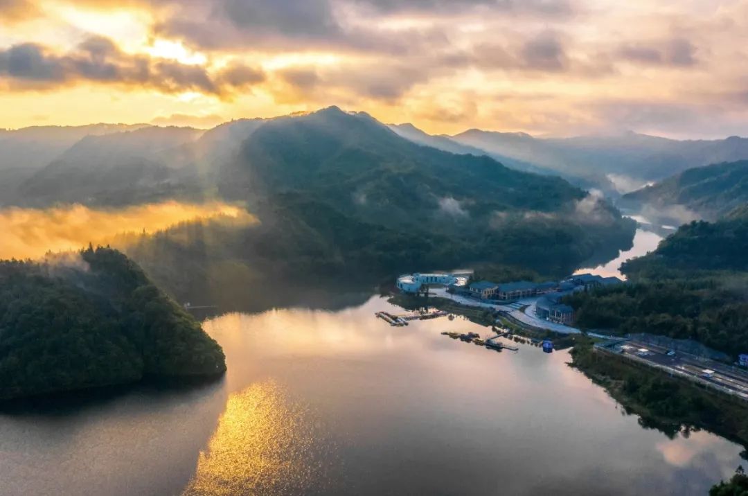 時(shí)而山巒在云霧中若隱若現(xiàn),宛如一幅淡雅的水墨畫(huà);時(shí)而陽(yáng)光穿透云層,灑在湖面上,閃爍著金色的光芒,美得讓人窒息。當(dāng)你輕輕泛舟湖上,仿佛置身于一個(gè)流動(dòng)的仙境。微風(fēng)拂過(guò),湖面波光粼粼,湖光山色也隨之變幻無(wú)窮;蚴茄睾⒉,感受清涼的微風(fēng)帶來(lái)湖水的清新味道。