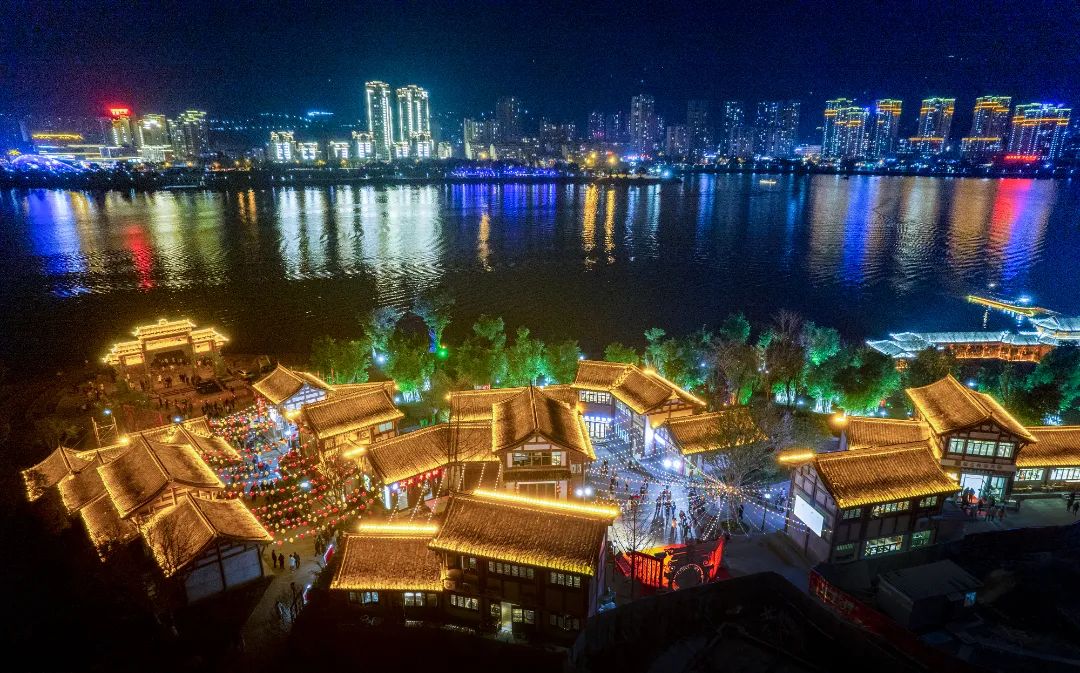 夜游開州故城:夜幕降臨時,“漢豐印秀”水幕光影秀在湖面綻放,霓虹與星光共舞,演繹一場湖光與科技的夢幻交響