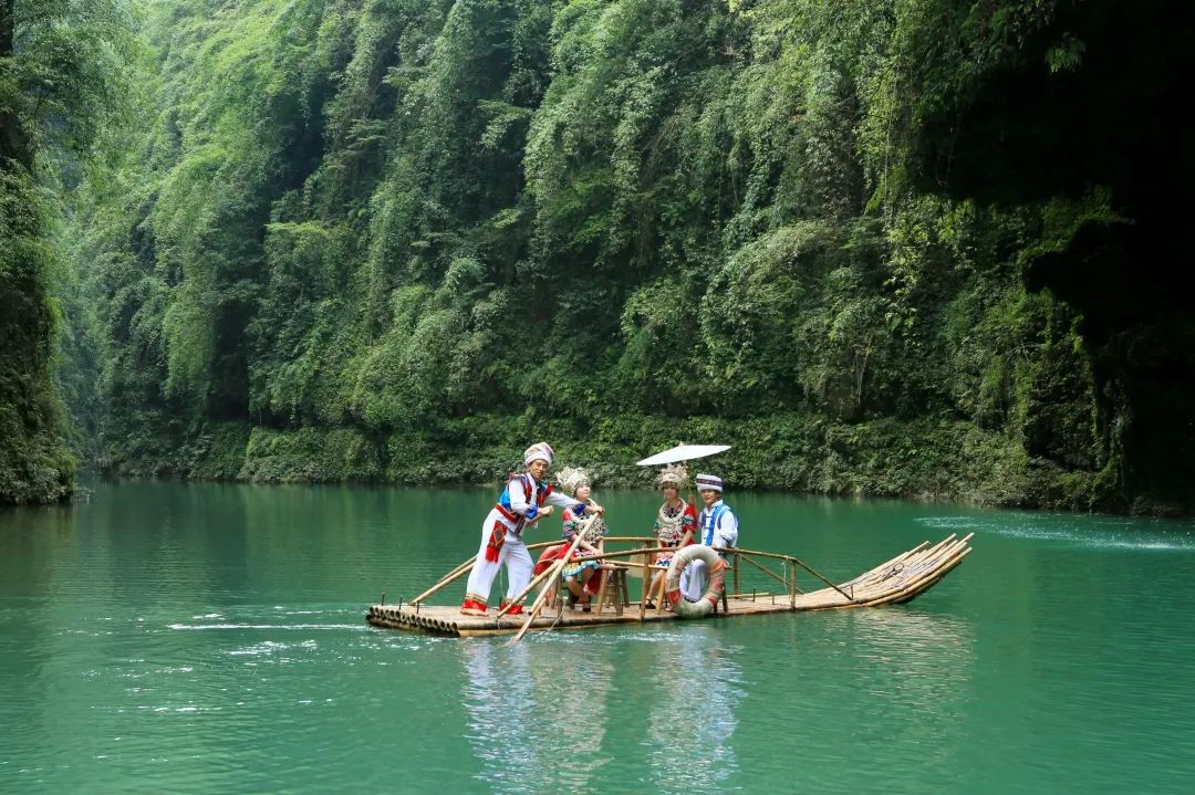 你將在這里體驗苗族的攔門酒與嬌阿依一起跳竹竿舞感受苗族姑娘的熱情與歌聲聆聽天橋戀歌踏上竹筏齊唱木葉情歌感受苗族文化的千年韻味