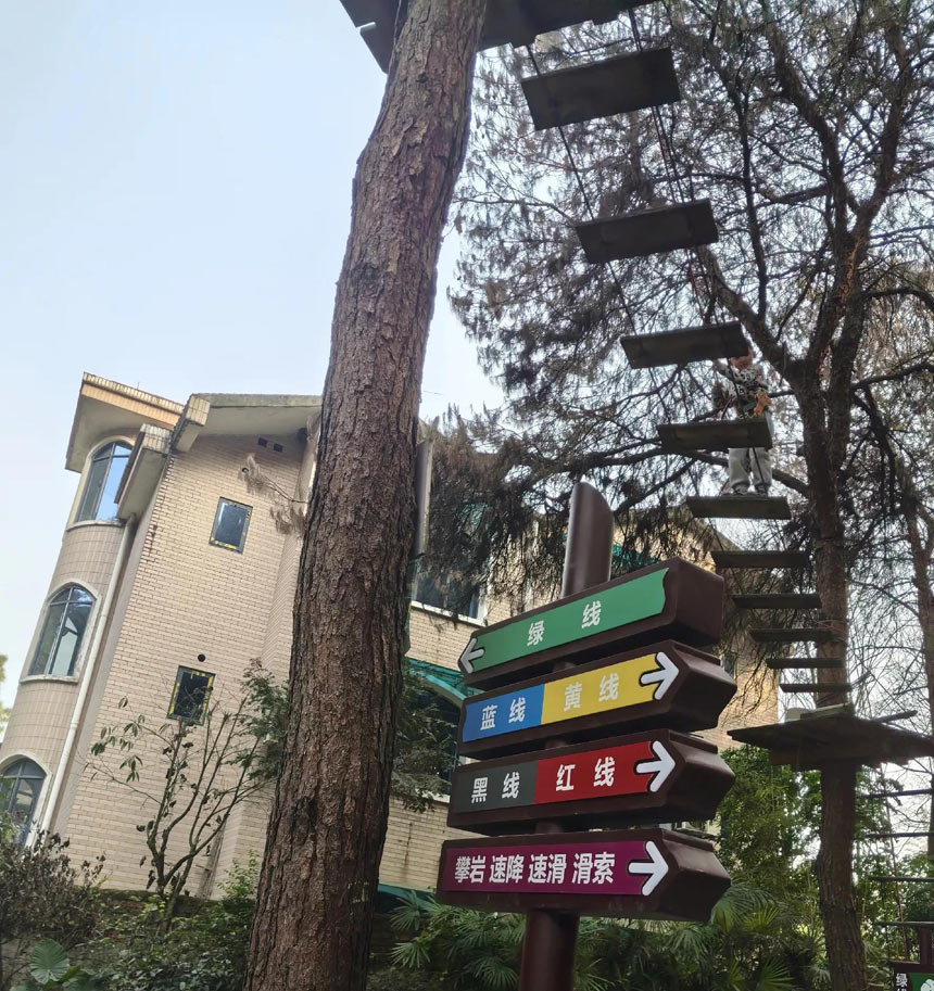 駕車一路往山上走,我們來(lái)到了玉峰山房車營(yíng)地附近。停好車我們?cè)谥苓呑咦,天氣不錯(cuò),曬曬太陽(yáng)。之后我們來(lái)到了山上的飛越叢林探險(xiǎn)樂(lè)園,這里分為多個(gè)難度等級(jí)的叢林穿越項(xiàng)目,可以根據(jù)自己的技能和體力選擇適合自己的線路進(jìn)行嘗試。飛越叢林探險(xiǎn)樂(lè)園有難度系數(shù)一顆星的黃線,也有難度系數(shù)五顆星的黑線,另外還有綠線、藍(lán)線和紅線。在天氣不錯(cuò)的周末,這里很是熱鬧,成了家庭親子游的理想之地。