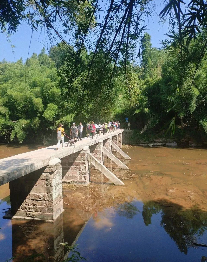 40℃高溫下,山友踏上石板埡村石橋,烈日把橋面曬得發(fā)燙,腳下像踩著小火爐?伤闹艽淞殖墒a,河水潺潺,熱風裹著草木香撲來,熱意里又透著山野的鮮活勁兒。大家或冒汗趕路、或逗逗小狗,燥熱中藏著對自然的執(zhí)著,這燙腳的橋,反倒成了和山野較勁又相融的獨特印記,痛并快樂著,是屬于山友的夏日野趣 。