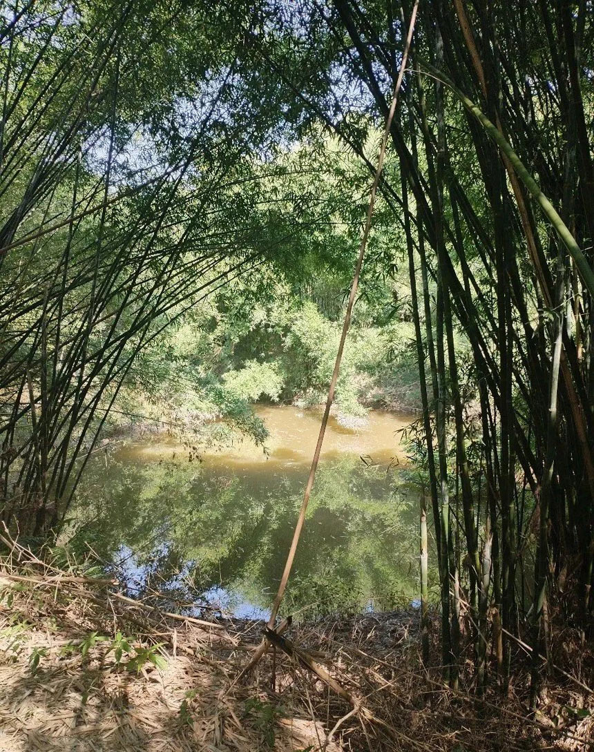 安瀾龍崗河,藏在綠意盎然的景致中。 龍崗河周邊植被繁茂,大片竹林環(huán)繞,為它添了幾分清幽與雅致 。河水在陽光照耀下,泛著微光,雖略顯渾濁,但卻透著一股自然的質(zhì)樸。