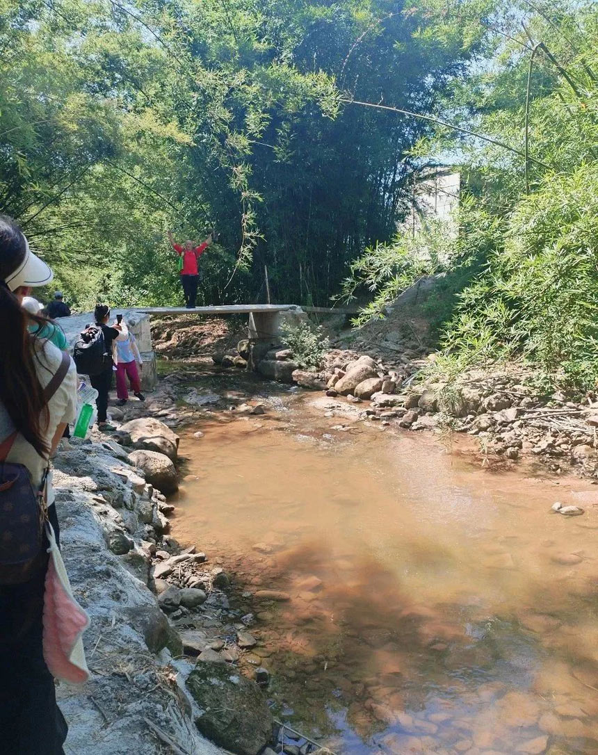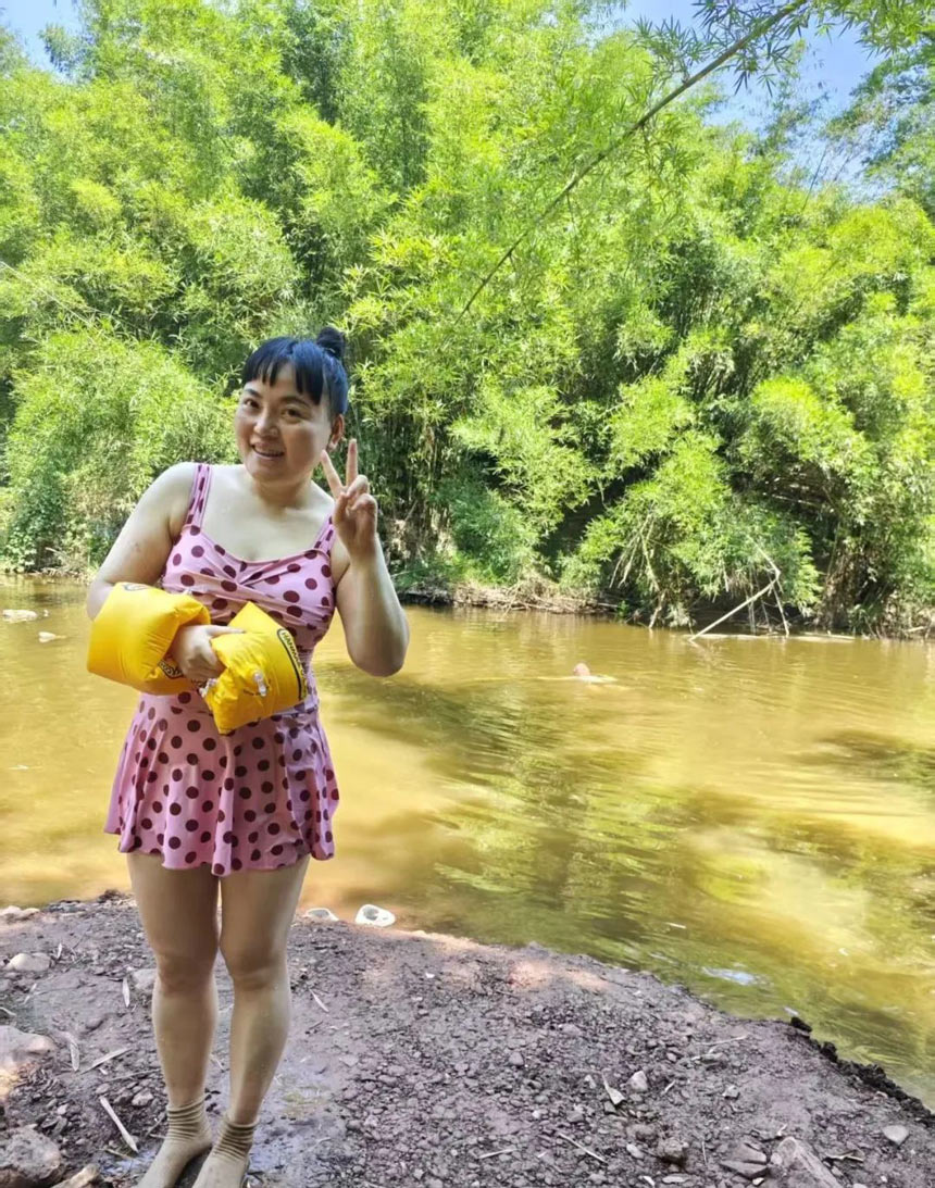 竹林邊,山友們換好泳衣,套上泳圈,直奔河水!40℃的天,就盼著扎進水里降降溫~有人比著“耶” 興奮打卡,有人大步往河邊沖,山野的熱和水里的涼撞個滿懷,這趟耍水,把夏天的燥熱全泡沒咯,就等著在河里撒歡啦~