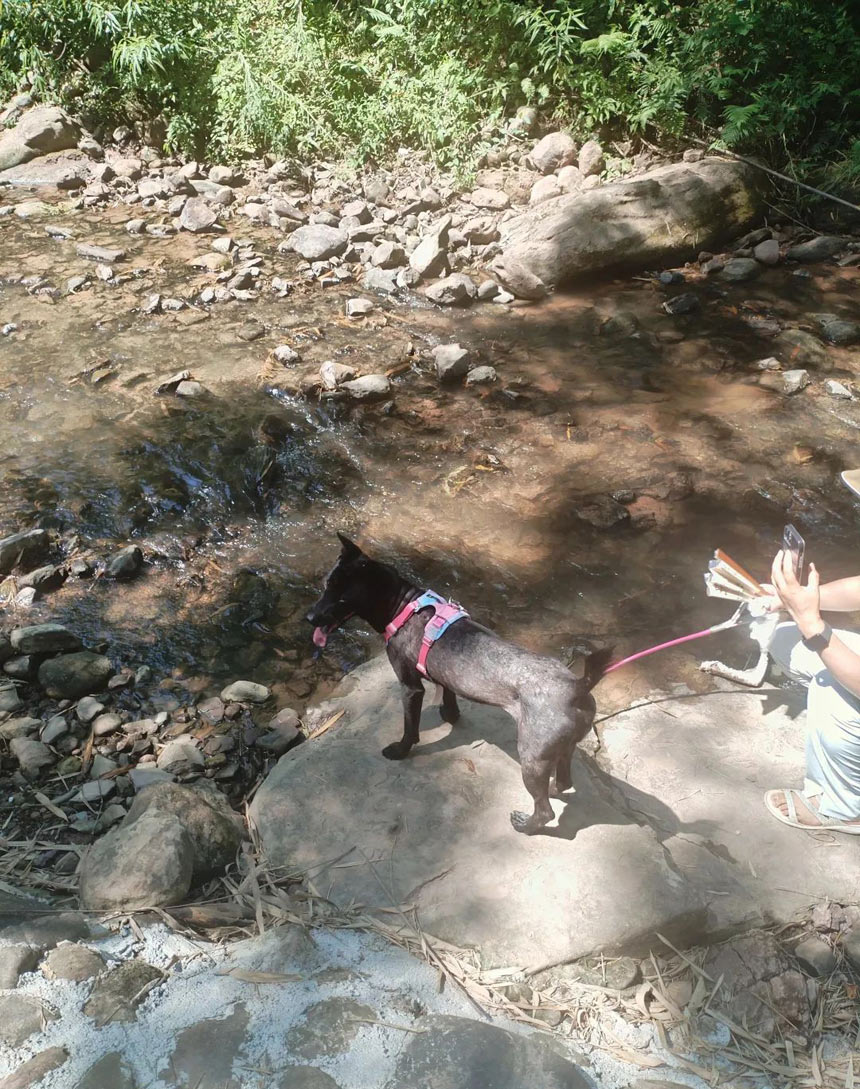 40℃的天,山友忙著定格美景,小黑狗可顧不上鏡頭,舌頭一吐,直瞅著溪水想解渴。熱烘烘的空氣里,人追著風景,狗追著清涼,山野的熱鬧和小動物的憨態(tài),湊成趟鮮活的徒步,連燥熱都變得有意思啦~