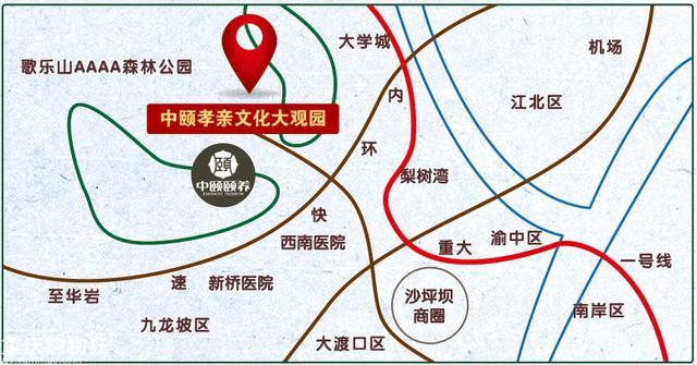 自駕線路:市區(qū)→沙坪壩區(qū)烈士墓→歌樂山鎮(zhèn)→中頤孝親文化大觀園