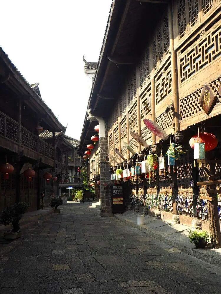 離開(kāi)滄浪橋,漫步進(jìn)入濯水古鎮(zhèn)的老街區(qū),仿佛穿越回了古代的商業(yè)重鎮(zhèn)。古鎮(zhèn)依“五街七巷三宮七院”的格局而建,保存完好的明清建筑鱗次櫛比,展現(xiàn)出濃郁的巴渝文化特色。半邊街是古鎮(zhèn)最熱鬧的街道,兩側(cè)店鋪林立,古樸的門楣上還能看到“光順號(hào)”、“煙房錢莊”等老字號(hào)招牌。街道上不時(shí)有身著民族服飾的當(dāng)?shù)鼐用窠?jīng)過(guò),為這座千年古鎮(zhèn)增添了幾分鮮活氣息。