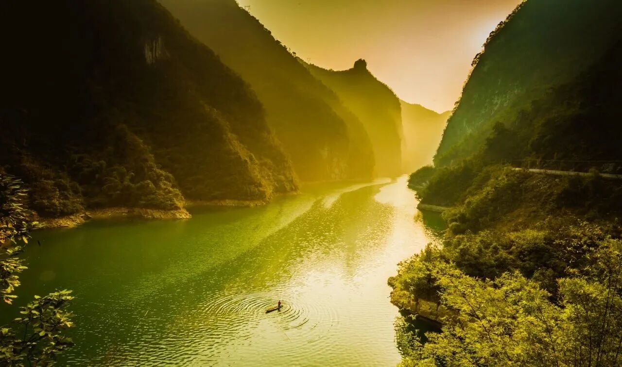 藏在自然的鬼斧神工峽谷幽深 碧水似翡更有奇石似龜 靜臥千萬年 乘船穿行其中崖壁高懸如垂天之幕碧潭映天似倒懸星河每一寸都是自然精心雕琢的秘境