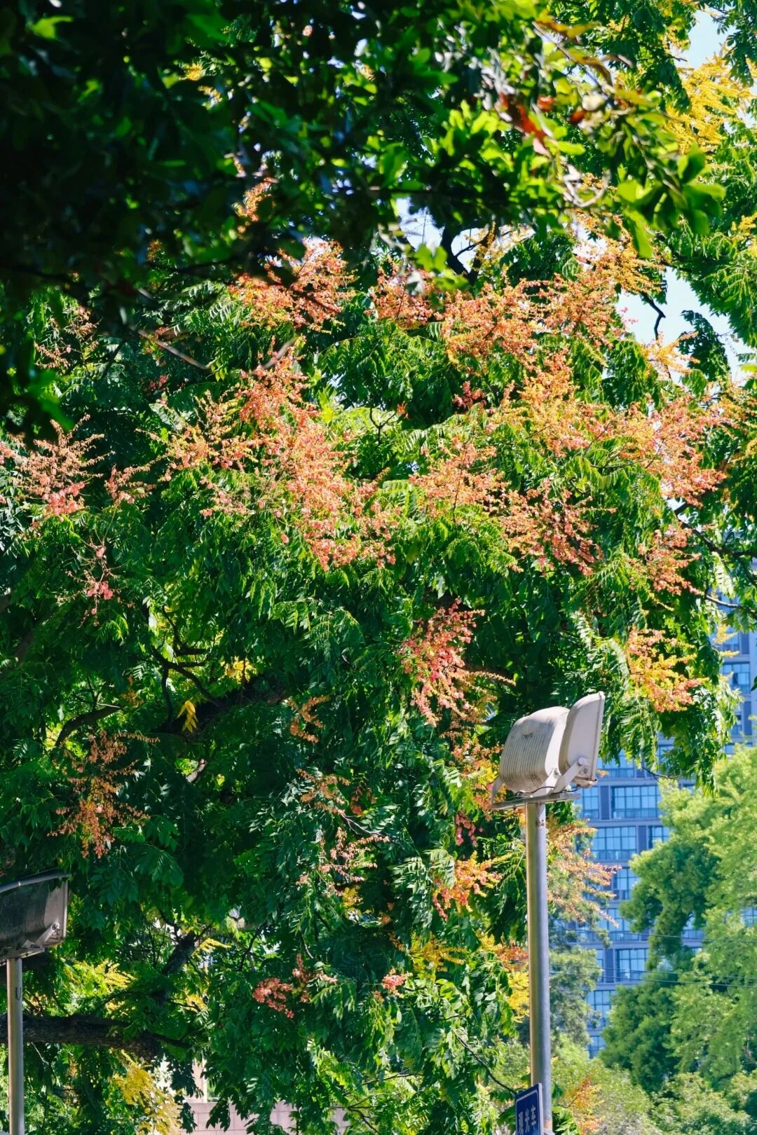 天府鎮(zhèn)被欒樹包裹風一吹,嫩黃的小花簌簌落下像是一場碎金雨綠葉打底,隨手一拍就是油畫質(zhì)感