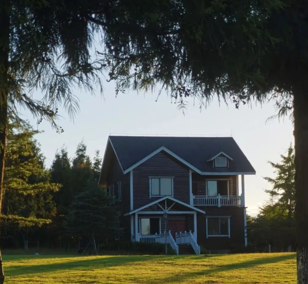 夕陽柔柔地鋪展著,仿佛將草地涂上了金色的光。黃昏的美被徹底展示,小木屋的時(shí)光也給加上了浪漫的濾鏡。