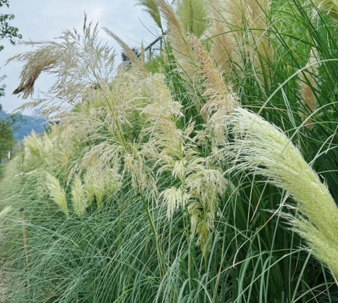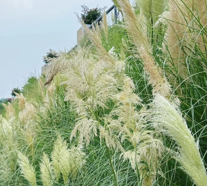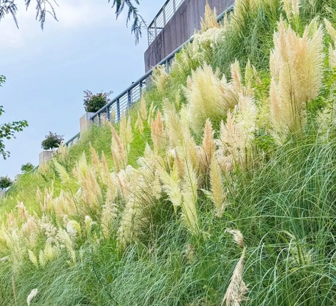 這處“坡坎崖”有一些臺階蒲葦錯落有致栽種在臺階上看上去層層疊疊形成了一道“天然的”蒲葦背景墻