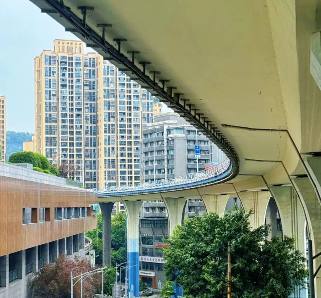 乘單軌3號線至“華新街站”2號口出站左行下臺階往華福路方向步行站在臺階上發(fā)現(xiàn)頭頂上方的渝澳大橋很好拍