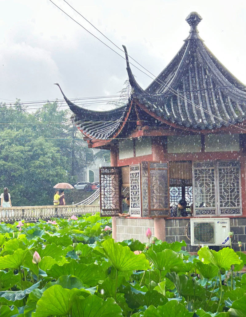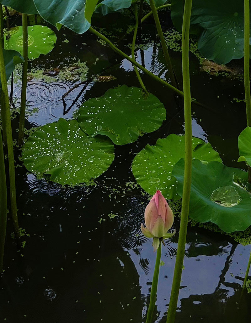 去賞荷花,剛好碰到下雨了