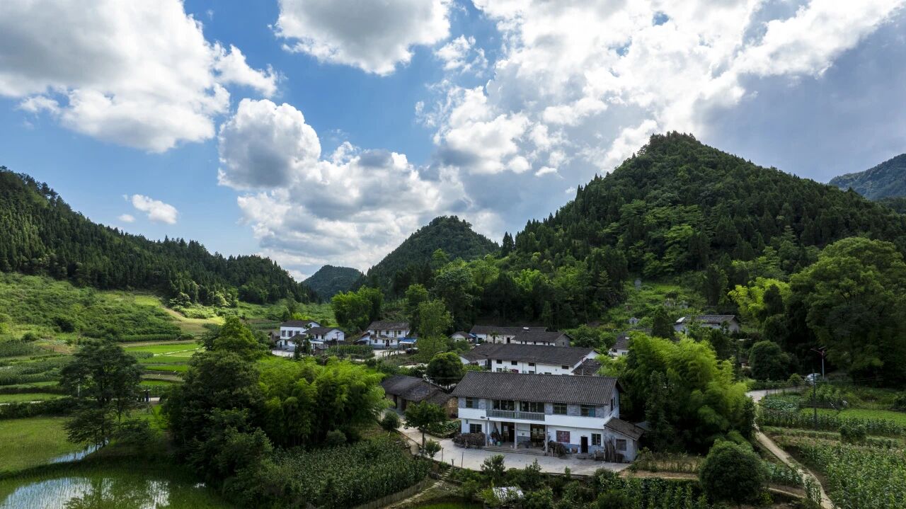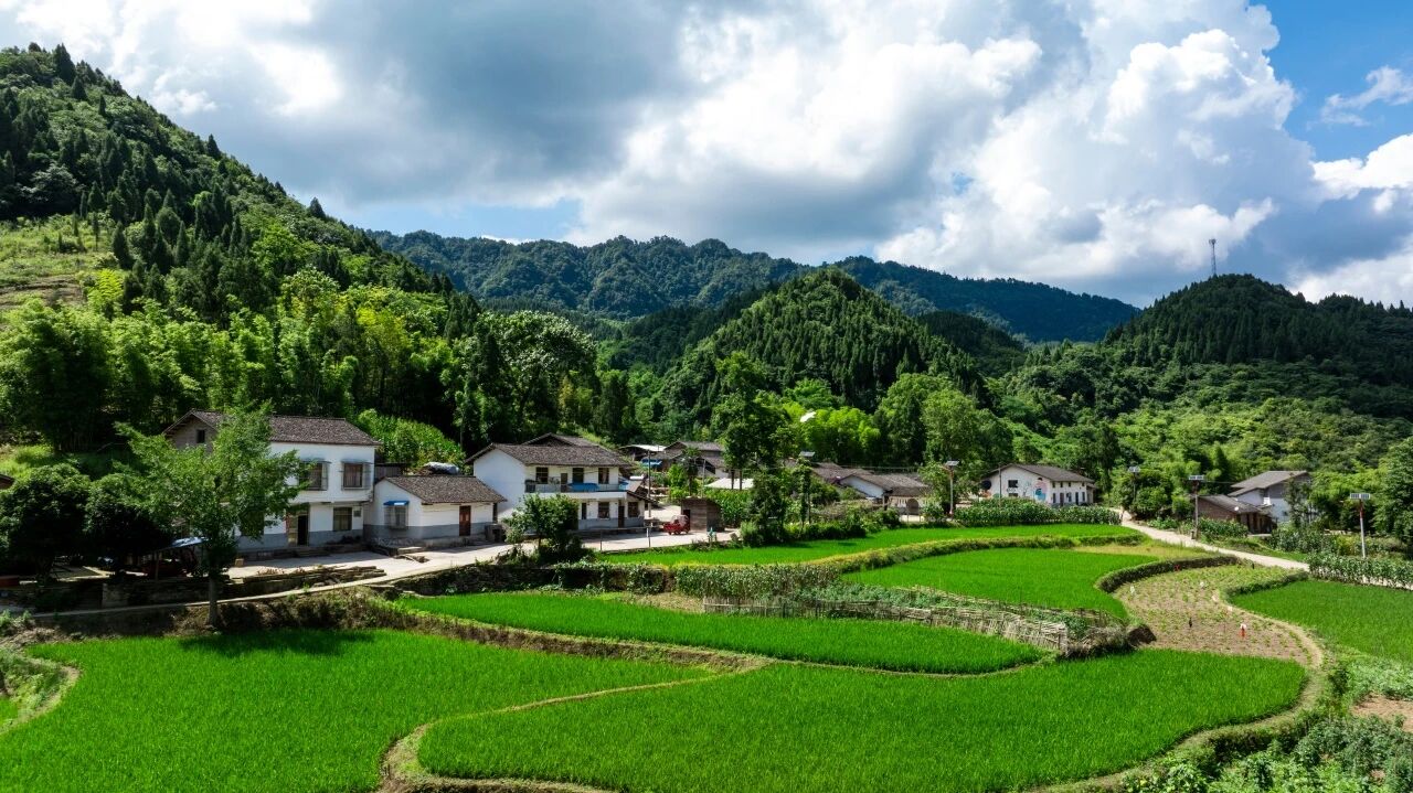 山間村落似被自然溫柔環(huán)抱的珍寶周圍田地如大地調(diào)色盤水稻田鮮嫩翠綠蔬菜地濃郁深綠在陽(yáng)光里泛著勃勃生機(jī)?諝夤鼟恫菽厩逑闩c泥土芬芳深吸一口仿佛能滌凈身心