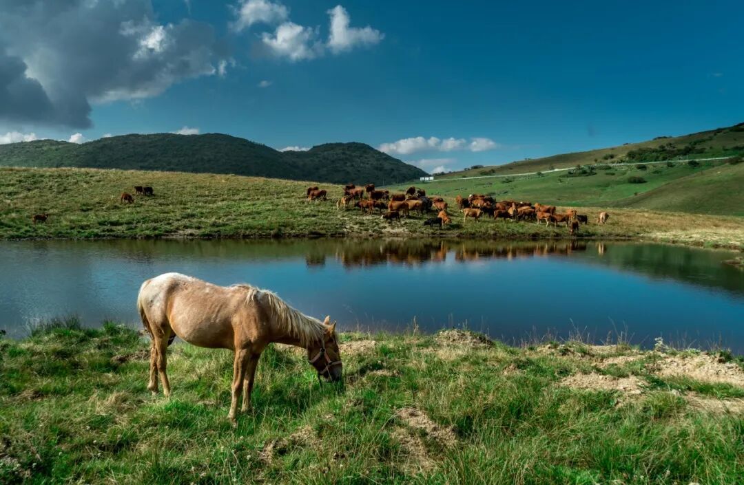 紅池壩的秋是攝影愛好者追捧的季節(jié)花兒在草叢中燃放最后一縷芬芳牛羊在草地上悠閑地啃食牧草夕陽從山丘后面落下將天際線染上耀眼的金黃不需要太多的技巧隨手一拍,如詩如畫