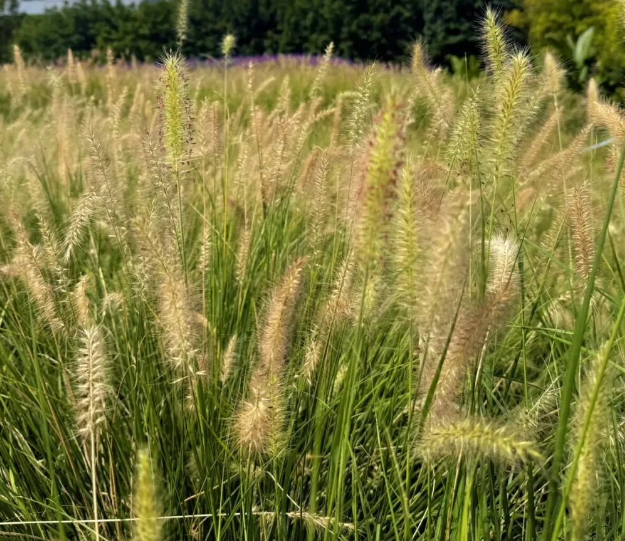 在紫色花海的上方緊鄰著一大片狼尾草放眼望去一大片毛茸茸的狼尾草隨風(fēng)搖曳將秋天的氛圍感拉滿