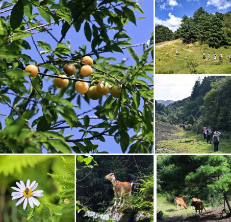 大約15:30拍完大合照,開始下山,前半程走著很歡樂,和小伙伴邊走邊聊天,一路還遇到牛羊、野生黃李子、漂亮的花花。