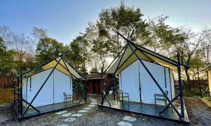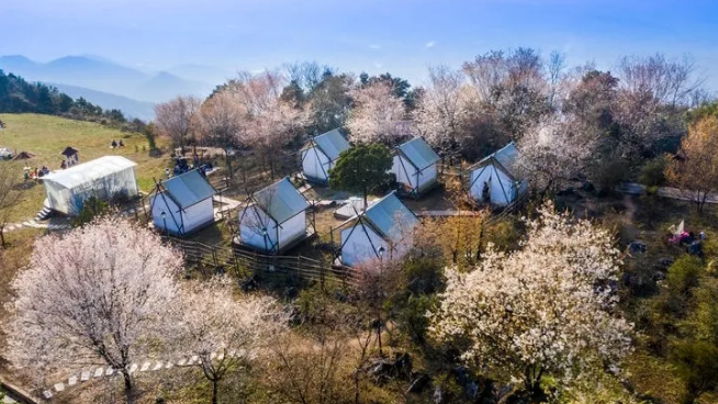 營(yíng)地貼心地劃分了三個(gè)區(qū)域,滿足不同需求: “帳篷營(yíng)地區(qū)” 有 11 頂現(xiàn)成的帳篷,房間里電源插座、飲用水、洗漱用品一應(yīng)俱全,啥也不用帶,拎包就能入。 “精致露營(yíng)區(qū)” 被幾十年的山野櫻花樹環(huán)抱,私密性拉滿,安靜得只能聽到風(fēng)聲和鳥鳴。