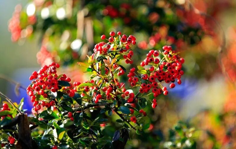 秋風(fēng)拂過,火棘果在陽光下閃爍,仿佛大地打翻了調(diào)色盤,將熾熱的色彩潑灑在綠色絨毯上。