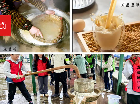 體驗石磨豆子、點豆花、燒豆?jié){活動,推磨、添豆子、燒水、過濾、點豆花都必須分工協(xié)助,耐心專注。親近自然放松身心,享受純天然美食的樂趣。