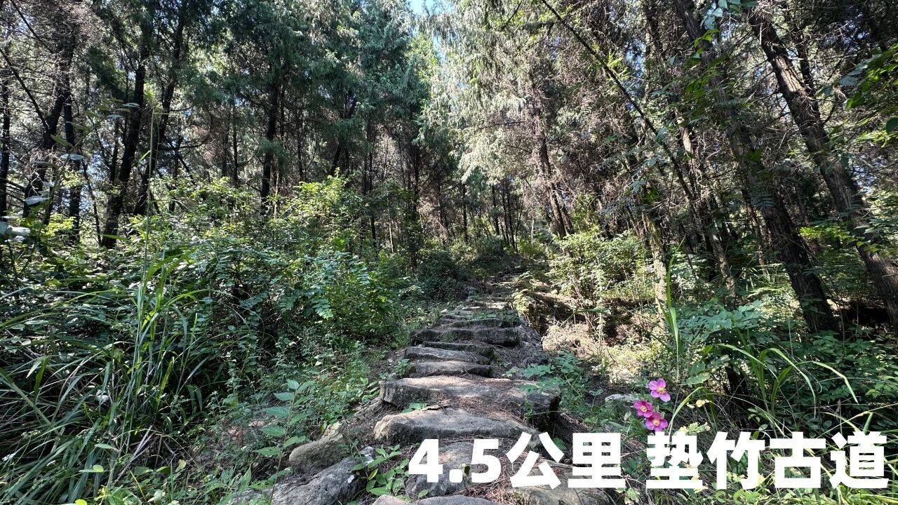 接下來(lái)的墊竹古道(墊江縣-四川省大竹縣)堪稱(chēng)50K組的"重頭戲"。這條承載著百年記憶的古道,路面由青石板鋪就,歲月的打磨讓石面光滑如鏡。古道兩旁樹(shù)木蔥蘢,陽(yáng)光透過(guò)密林的縫隙灑下斑駁光影,美得讓人恍惚。卻也暗藏挑戰(zhàn):古道坡度較陡,全程跑下來(lái)堪比 “移動(dòng)心肺訓(xùn)練器”。