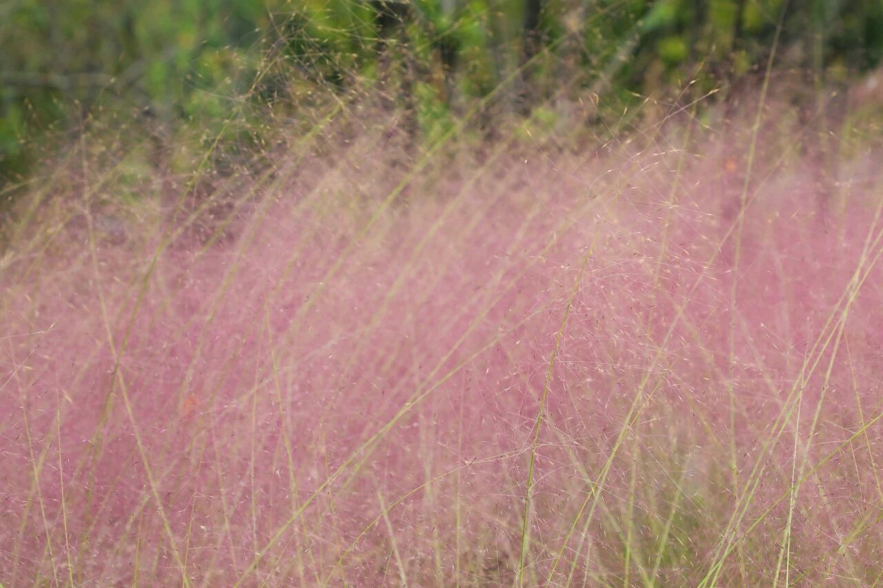 一株株粉黛亂子草相依相偎細(xì)密的穗絲自基部向上延伸陽(yáng)光灑下花穗閃爍著柔和的光暈仿佛為大地披上了一層半透明的輕紗