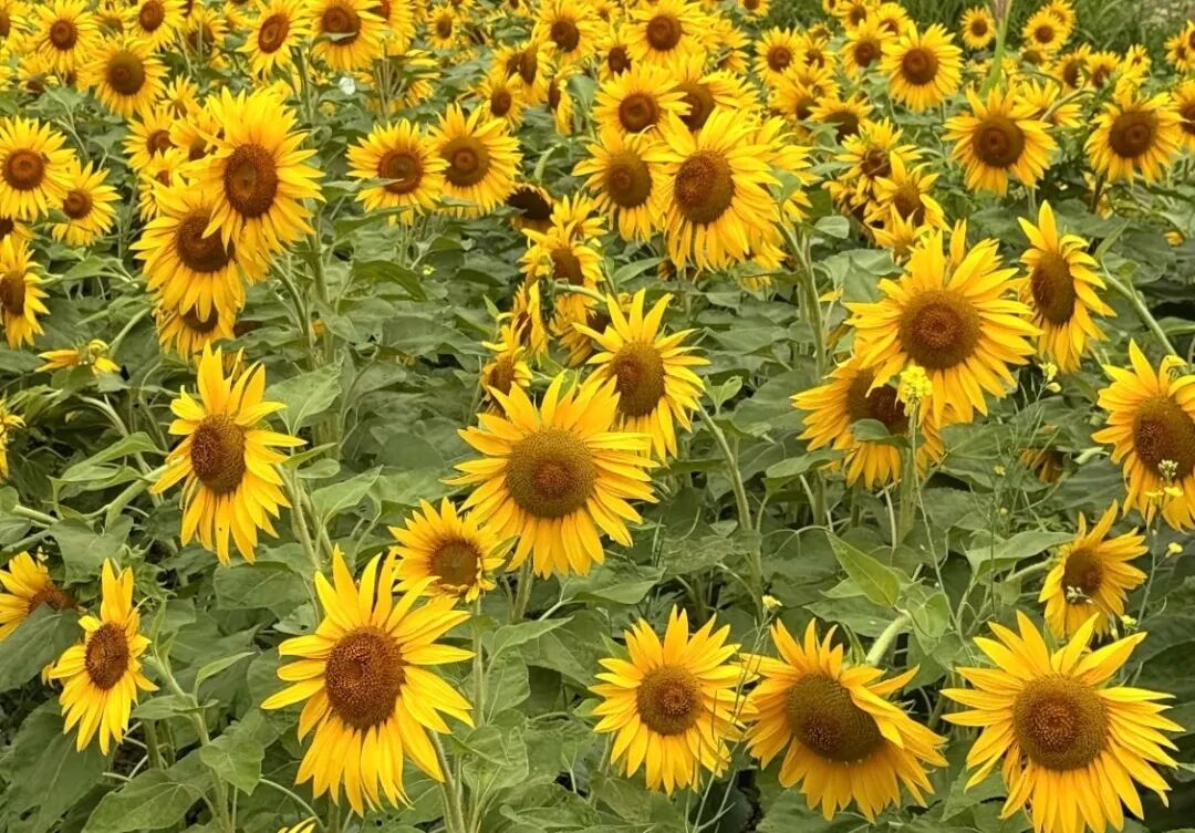 興隆鎮(zhèn)牛皇村的向日葵花海是重慶秋季的熱門打卡地之一;蚀宓南蛉湛êEc200余畝七彩稻田相鄰花田順著山坡鋪展明黃的花盤與白墻黛瓦的農(nóng)舍、周邊的樹木相映成趣構(gòu)成了一幅美麗的鄉(xiāng)村畫卷