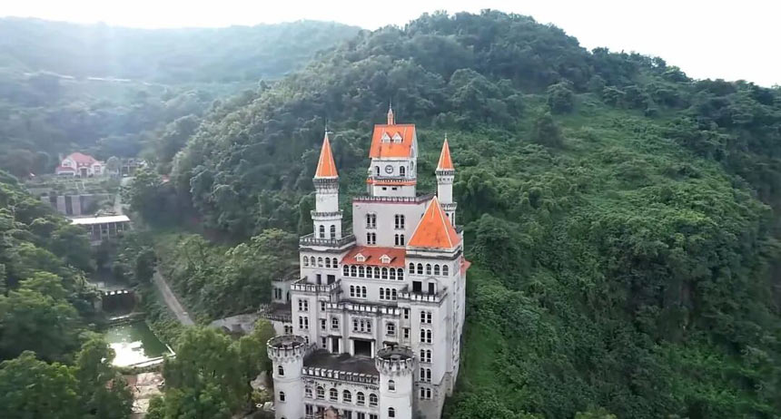 在九龍坡區(qū)中梁村附近尖刀山,有一座非常霸氣的城堡,位于山澗之中?瓷先ハ駳W洲的某個莊園一樣。讓人非常的費(fèi)解。修別墅,修洋房,修庭院,這都很正常,而在中國修城堡的,那還是屈指可數(shù),很少見。