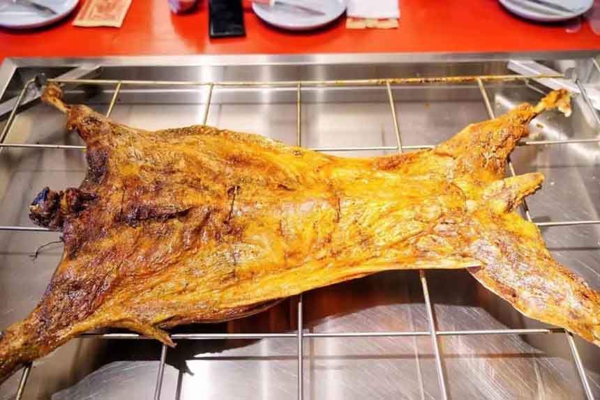 重點來了:烤全羊是我們的鎮(zhèn)店之寶,需提前預定!整羊是一只長到8個月的跑山羊,直接上火烤,集形、色、味、鮮于一身,外焦里嫩、干酥不膩,絕對的人間美味。