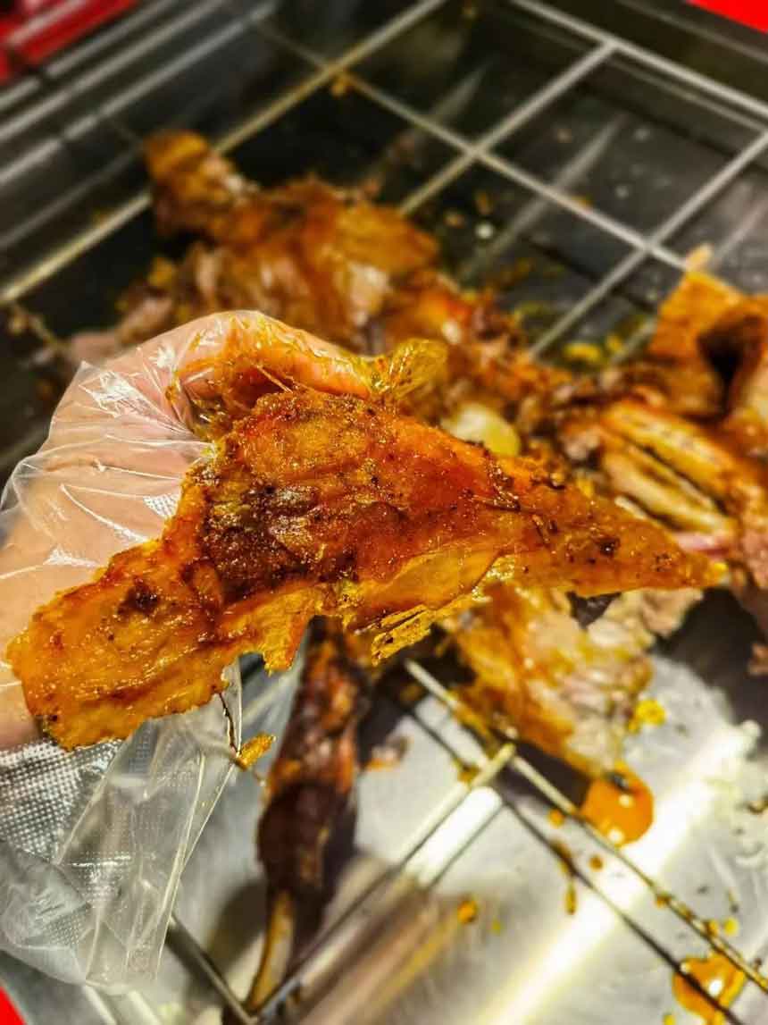 烤的時候,你可以看到,油脂在火堆上跳舞,咬下一口,皮又脆又嫩,羊肉鮮嫩無比,汁水順著羊肉的肌理流動,盈盈動人,吃完之后余香就能回味很久很久……