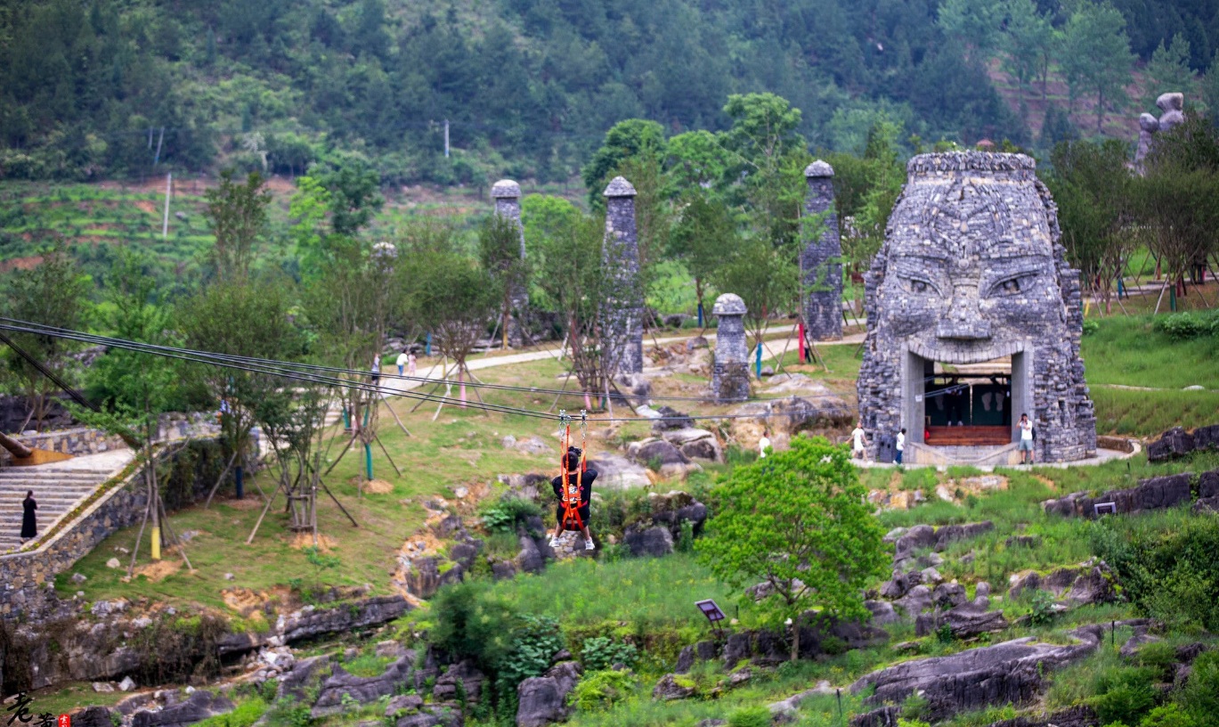 除了賞花觀景,是不是過(guò)于單調(diào),如果還有一些互動(dòng)性的游戲豈不完美?這當(dāng)然是沒(méi)問(wèn)題。景區(qū)在疫情封閉期間也著力思考升級(jí)改造。如今的疊石花谷和我第一次來(lái)的時(shí)候增加了不少互動(dòng)元素。比如滑索,鐵索橋等都是不錯(cuò)的互動(dòng)游戲。但這其中我個(gè)人最欣賞的仍然是石頭藝術(shù)。一塊官運(yùn)石,讓許多游客爭(zhēng)先恐后鉚足了勁去推,寄希望給自己帶來(lái)好運(yùn)。還有一些石頭上挖出一些人物造型,可供游客按型嵌入,對(duì)號(hào)入座。這考驗(yàn)的是你的柔韌,以及臨場(chǎng)的綜藝感,且互動(dòng)性很強(qiáng)!