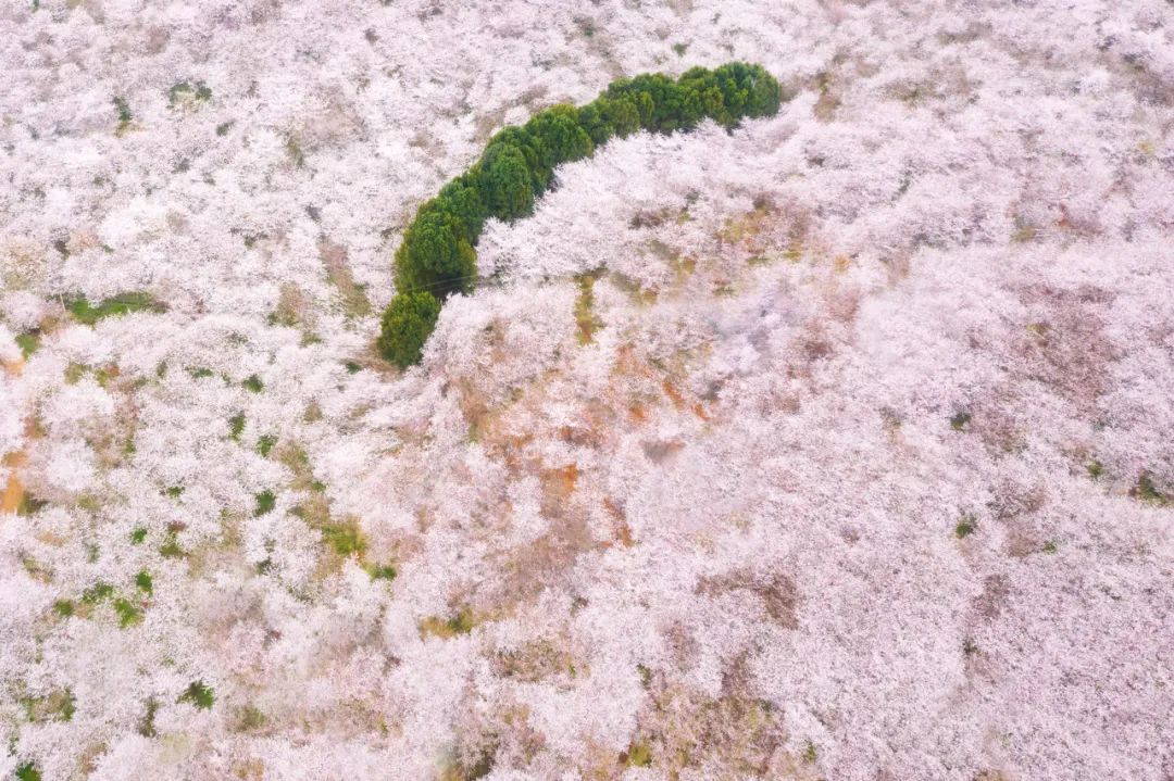 柔弱與壯闊并存,風(fēng)情與壯烈共生。平壩櫻花園里,白色早櫻和粉色晚櫻交替登場(chǎng),在西南大地上描出一幅絕美畫(huà)卷。