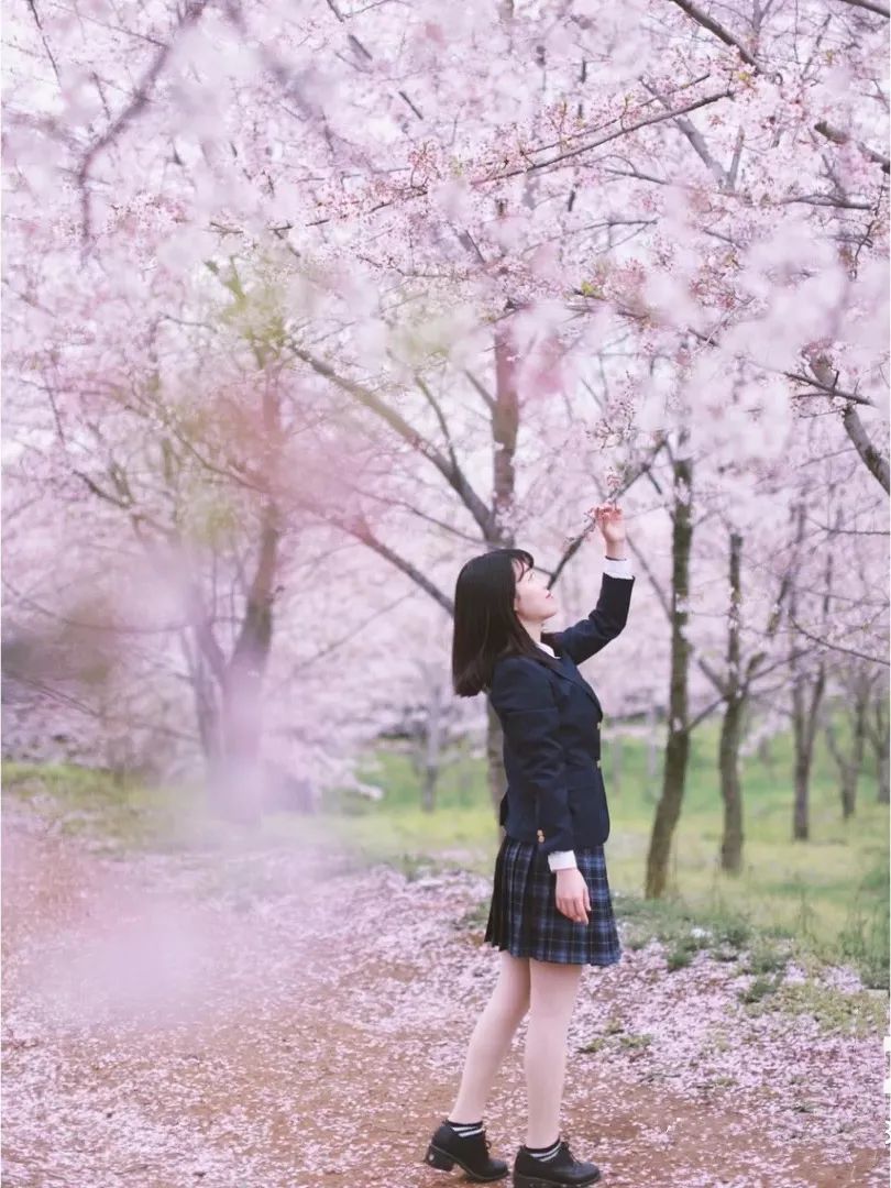 等櫻花飄落的時(shí)候站在樹(shù)下拍,和花枝合照,拍出來(lái)都不會(huì)錯(cuò)。