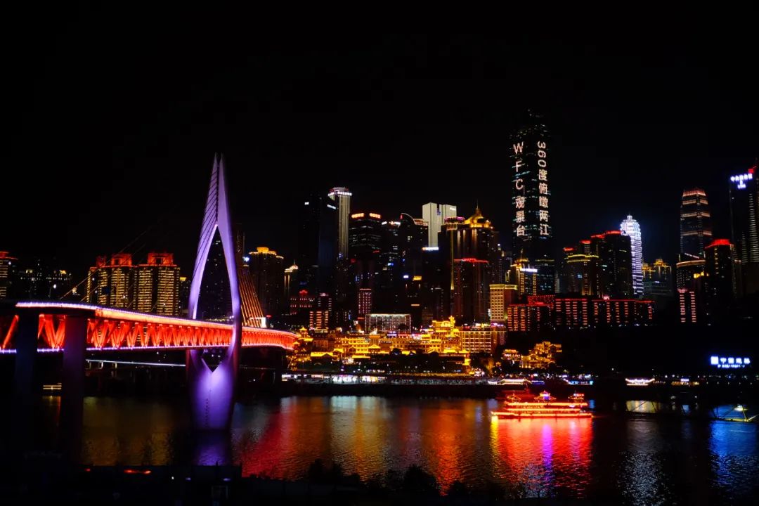 在千廝門大橋上拍洪崖洞全貌比較好看,也可以在橋?qū)γ媾,能同時(shí)拍到亮燈的橋+洪崖洞+游船。