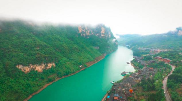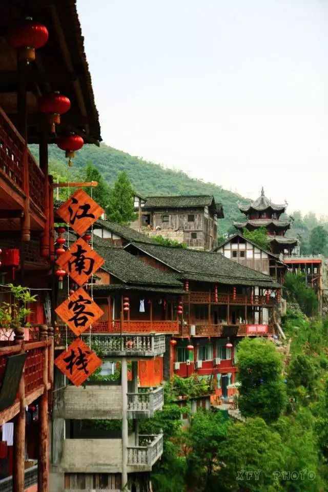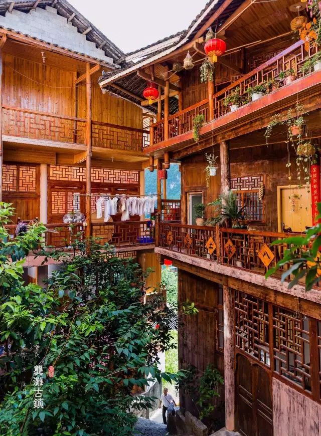 龔灘古鎮(zhèn)是“絕壁上的音符”,依循山勢而建,鱗次櫛比的吊腳樓錯落有致地佇立在樹木中,與自然融為一體。