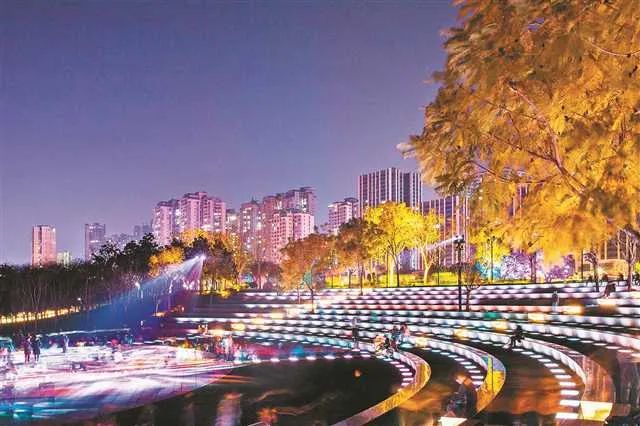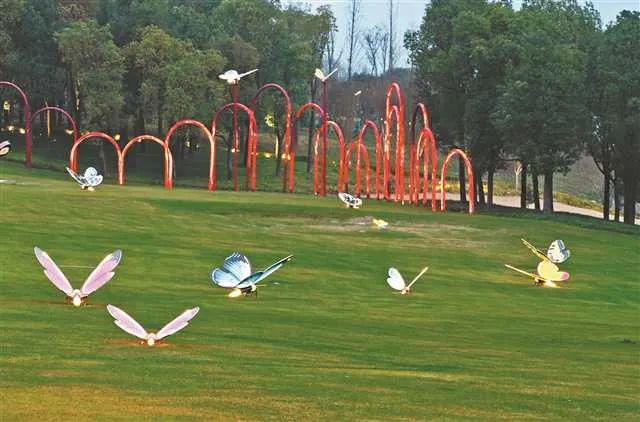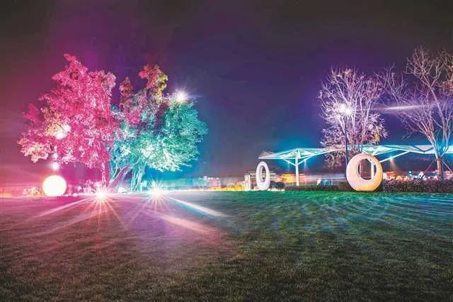 突然,一道彩色光亮劃破夜空,驚醒了我的夢境。以“花好月圓”為主題的光影之旅開始了,現(xiàn)代燈控技術(shù)將巴渝文化、民間傳說、現(xiàn)代動漫等元素完美融合,打造出了七星伴月、流星如螢、猴子撈月等11處夢幻燈景,就像是一場極致浪漫的光影盛宴。 “最美的風景,永遠在故鄉(xiāng)。漂泊他鄉(xiāng)數(shù)載,今日在月光草坪了卻一段濃濃的思念!被赝§F掩映的月光草坪,好友如此感嘆。 是啊,今夜的月光草坪,似一艘裝滿鄉(xiāng)愁的船,在月色里停駐。