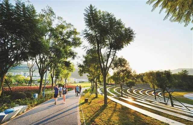 草坪漫步:自行車道、跑步道、漫步道串聯(lián)了整個公園,置身其中,欣賞著北斗之戀、紫薇星、南方的雪、愛在深秋等節(jié)點小品,以及香樟、紫薇、銀杏、玉蘭、葛槐、紅梅等近100種花卉植物,讓你猶如游走在水墨畫卷中。