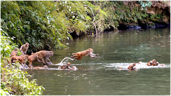 金刀峽峽谷里有第一個(gè)地方有猴子,不過是野猴子,要是想去看它們的話記得不要帶吃的,預(yù)防猴子奪食傷人。這個(gè)國慶節(jié)帶上親人朋友,回歸自然,去金刀峽探險(xiǎn)。