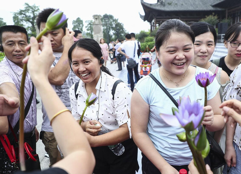 不得不說(shuō),我們大足的荷花也是真的美,聽(tīng)送荷花的美女說(shuō),吉尼斯世界紀(jì)錄認(rèn)證是很難的,很多連申請(qǐng)那關(guān)都過(guò)不了,我們大足能進(jìn)入吉尼斯世界紀(jì)錄真是不容易啊。很多人知道大足,是因?yàn)榇笞闶,但是我們大足的荷花一樣美艷動(dòng)人哦,歡迎大家有空來(lái)大足看荷花!