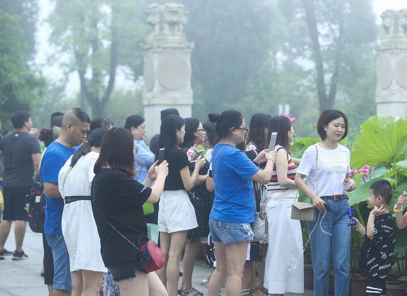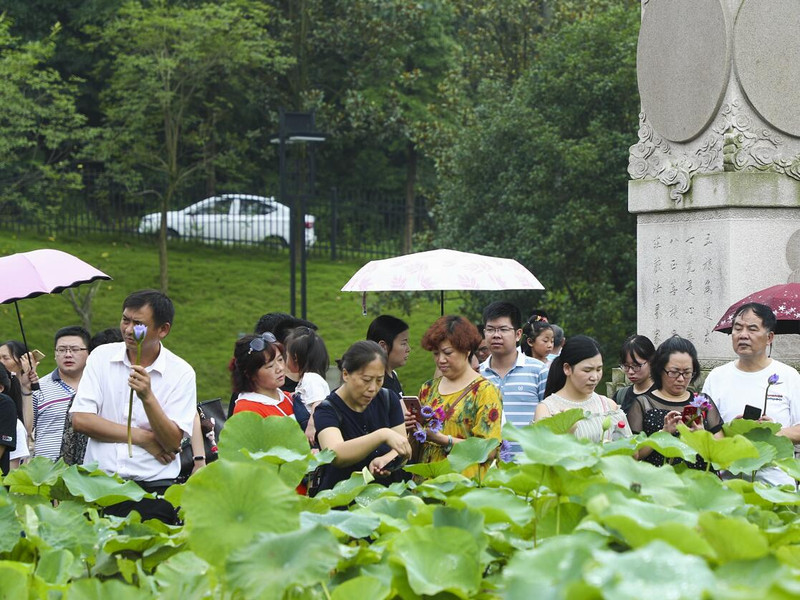 周六上午,在家里吃過(guò)早飯后,我們就帶娃出發(fā)啦,大概10點(diǎn)半,我們就到了大足石刻瑞相廣場(chǎng),來(lái)看荷花的人很多。因?yàn)槭羌崴故澜缂o(jì)錄,現(xiàn)場(chǎng)還有舞臺(tái),感覺(jué)很正式。據(jù)說(shuō)現(xiàn)場(chǎng)一共有10700盆荷花,都是從大足荷花山莊等等一些荷花基地運(yùn)過(guò)來(lái)的,娃兒第一次看到這么多荷花,很興奮,成片的荷花真的很美,還有“太空荷花”“寶珠觀音”等等一些很特別稀有的荷花品種,都在現(xiàn)場(chǎng)可以看到,老公一直拿著單反拍荷花。我們還看到有戴著工作牌的吉尼斯世界紀(jì)錄的工作人員在測(cè)量,成片的荷花確實(shí)是太震撼了!