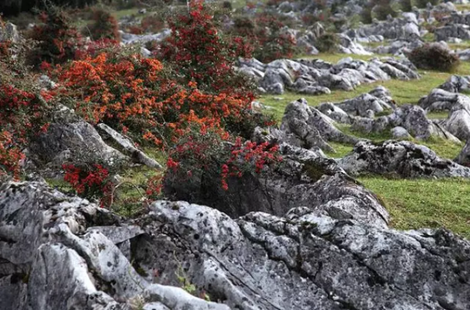 天坪10月初,石柱千野草場的火棘(一種紅色觀賞性植物)已經(jīng)紅了。同時,草場內的植物開始變黃,初現(xiàn)彩林景觀。國慶期間,游客已經(jīng)可以在千野草場,及黃水觀賞到美麗的秋色了。