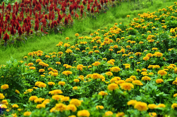 以及芳香植物10余品種,如碰碰香、薄荷等等,均為喜陽光、花期長、耐熱耐旱的品種,不 但適應(yīng)渝北氣候特點,且極富觀賞價值,營造氣勢磅礴、層次分明、姹紫嫣紅的玉峰山“花海”,并可達到“天天有花、四季不同、常年不敗”效果。
